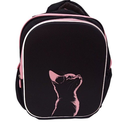 Школьный формованный ранец КОШЕЧКА, черный (РЦ-4378), брелок в комплекте, 38х23х20 см