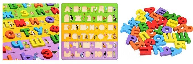 В наборе: - игровое поле (30х30 см.) - буквы. Материал: дерево. Соответствует требованиям безопасности продукции. Для детей от 3 лет.
