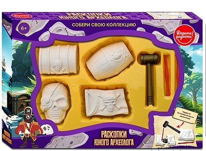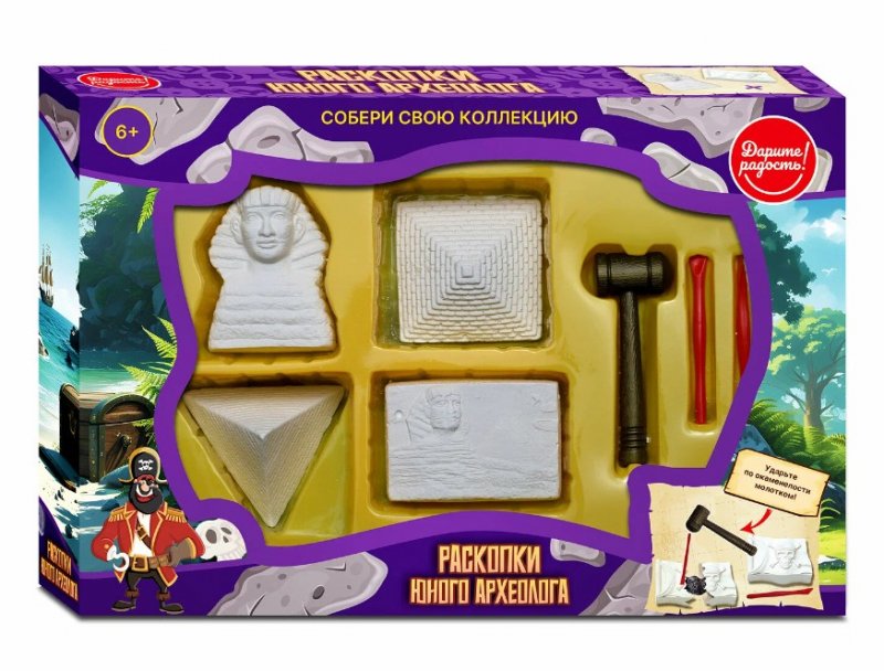 В наборе: - окаменелый грунт 4 шт. - молоток 1 шт. - палочки 2 шт. Соответствует требованиям безопасности продукции. Для детей от 6 лет.