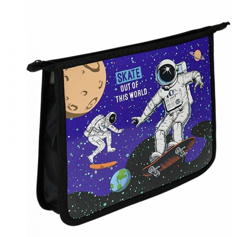 Папка на молнии с ручками А4 СКЕЙТБОРДИНГ В КОСМОСЕ-1 (П-1084) с прозрачной вставкой и дизайн