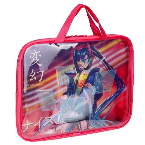 Папка-сумка на молнии с ручками А4, АНИМЕ (П-1488) с прозр вставкой, с дизайном, 350х265х40мм