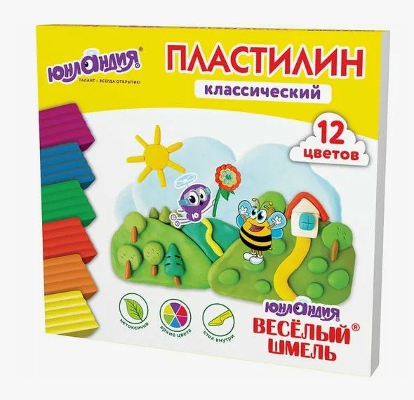 - Пластилин классический ЮНЛАНДИЯ "ВЕСЁЛЫЙ ШМЕЛЬ", 12 цветов, 240 грамм, стек, ВЫСШЕЕ КАЧЕСТВО, 106431