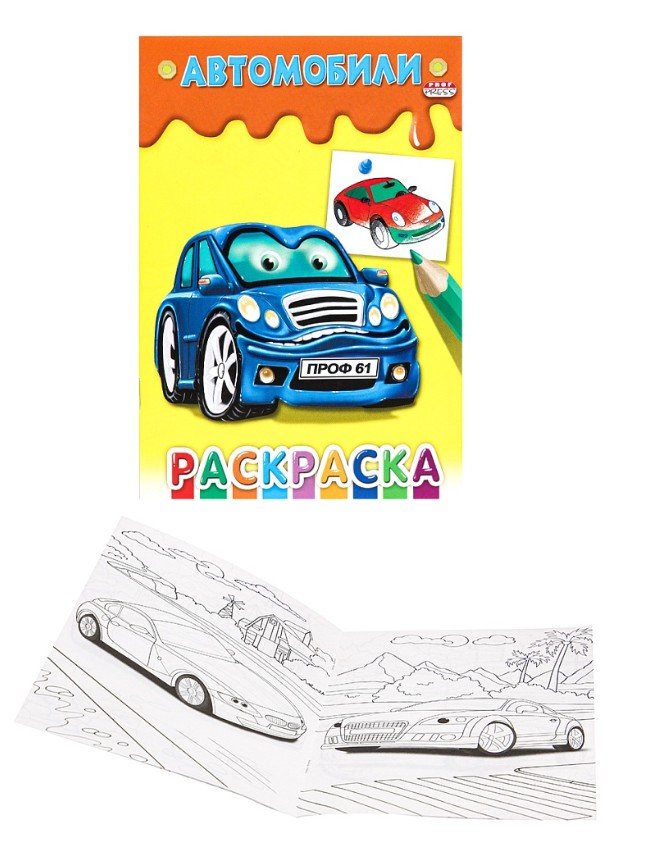Раскраска А5 Ч/Б. АВТОМОБИЛИ (Р-7642) 8л.,на скрепке,обл.-мелов.бумага