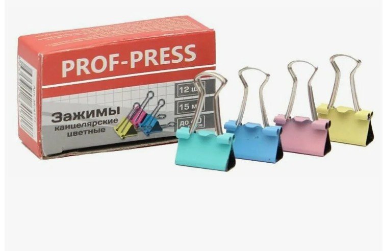 Зажим для бумаг ЦВЕТНОЙ (ЗК-4171), 15мм, (набор 12шт) в карт. коробке