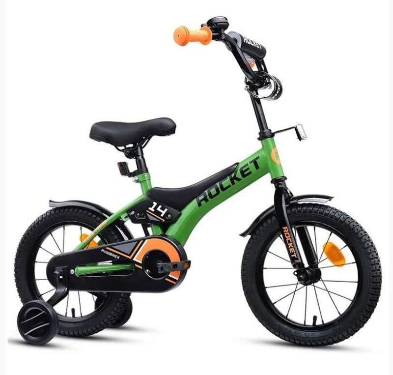 Велосипед двухколёсный 14" Rocket Phoenix 14.PHOENIX.GN.25, зелёного цвета — это надёжный и безопасный транспорт для маленьких исследователей. Он поможет ребёнку развивать координацию, равновесие и физическую активность.