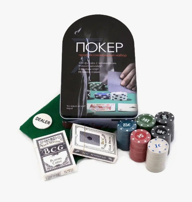 Покер - увлекательная игра, которая пользуется популярностью. Набор для покера в яркой металлической упаковке круглой формы - хороший подарок друзьям, вместе с которыми можно еще веселее провести время. Набор для покера на 120 фишек с номиналом превратит игру в увлекательный квест, и доставит вам и вашим друзьям незабываемые впечатления.Все комплектующие находятся в компактном жестяном коробе, поэтому его можно брать с собой в дорогу.Состав набора:Фишки номиналом 1 - 20 шт.Фишки номиналом 5 - 20 шт.Фишки номиналом 10 - 20 шт.Фишки номиналом 25 - 20 шт.Фишки номиналом 50 - 40 шт.Фишка Dealer2 колоды карт по 54 шт.СукноТакой набор станет отличным подарком для любителей покера.