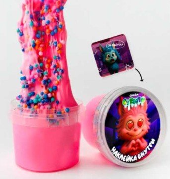 Слайм "Стекло" Butter 55 гр Розовый цвет, с шариками и наклейкой внутри 00-00512628