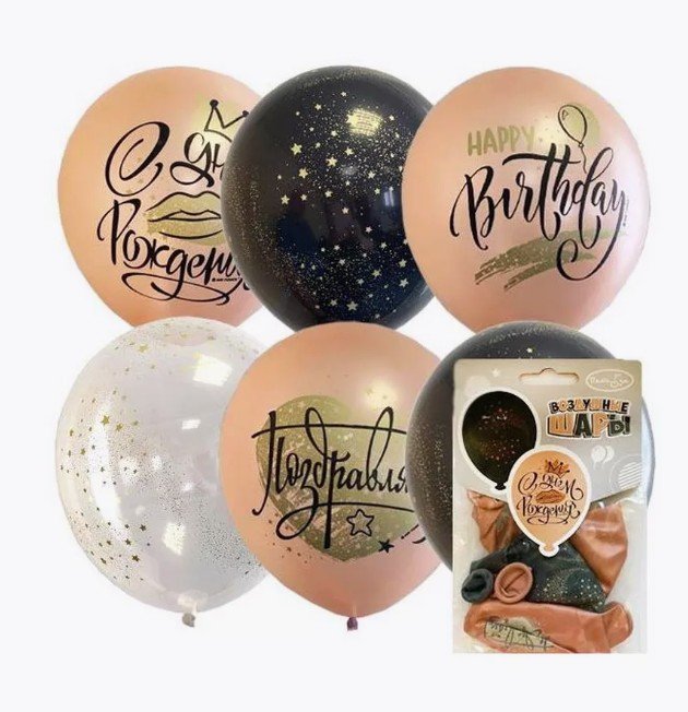 Набор шаров надувных Пати Бум ПатиБум, С Днем Рождения Rose Gold 12", 30 см, 5 шт (6073190). Набор шаров из латекса из коллекции Rose Gold с поздравительными надписями. Из такого набора можно составить оригинальную воздушную композицию или сделать их частью подарка имениннику. Прочные эластичные шарики представлены в наборе в трех цветах и украшены яркими звездочками и тематическими надписями. Надувать шары можно как воздухом, так и гелием. Фасовка по пять шаров в упаковке. Количество в упаковке, шт: 5;