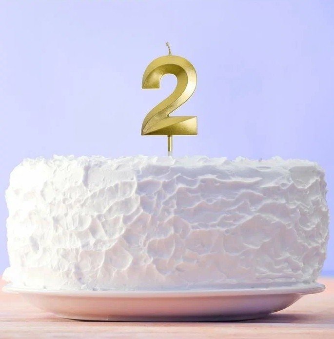 Свеча цифра "2" , золото, 3,5 х 12 см
