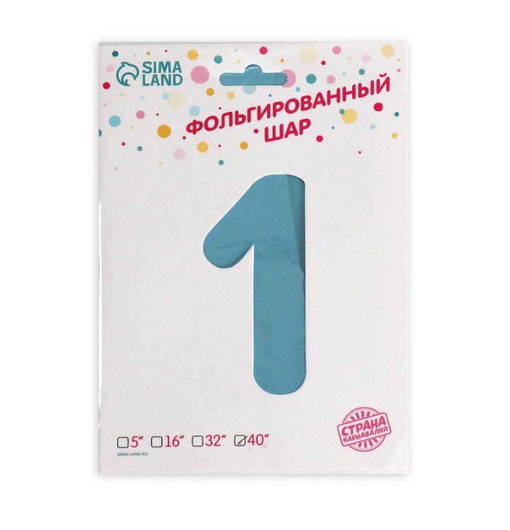 Шар фольгированный 40", цифра 1, цвет нежно-голубой