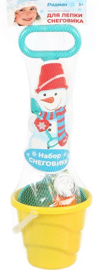 В набор входит: лопатка, ведерко, морковка, глаза (2 шт.), пуговицы (3 шт.).